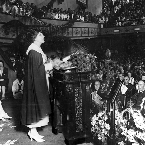 Aimee alquiló un gran auditorio para acomodar grandes multitudes. En un evento en San Diego, la Guardia Nacional tuvo que ser llamada para controlar una multitud de más de 30 mil personas. La gente esperaba en fila por horas, aun durante la noche, para escuchar a la “Hermana McPherson” (ahora llamada cariñosamente “Hermana Aimee”) predicar y orar.